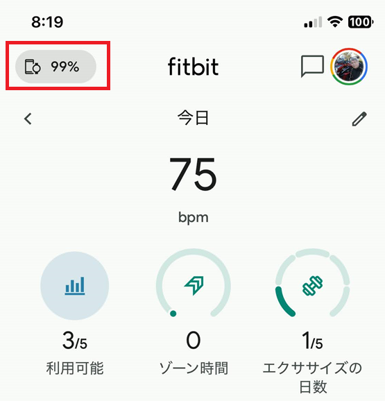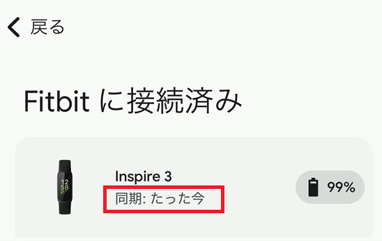 Fitbitデバイスとの最終同期時刻が表示されます。